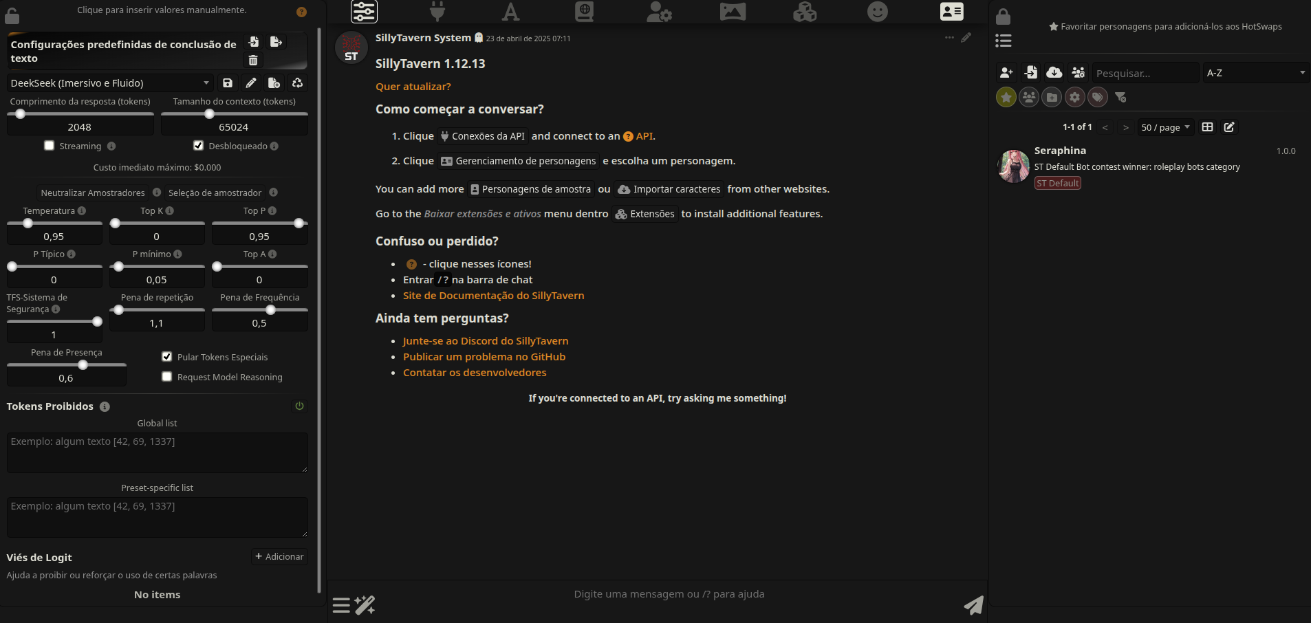 Este é um projeto de chatbot privado (Em desenvolvimento). Criado com o objetivo de otimizar o uso de LLMs externas e acelerar o treinamento de modelos locais. Este projeto utiliza a interface do SillyTavern em conjunto com os modelos de alta carga do OpenRouter.